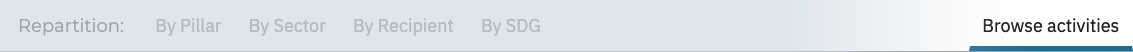 by default showcases the shares for each SDGs. It allows to restrict visualisation to the data identified with one, or more, SDGs. The SDG data can be further visualised by pillar, sector, recipient etc.